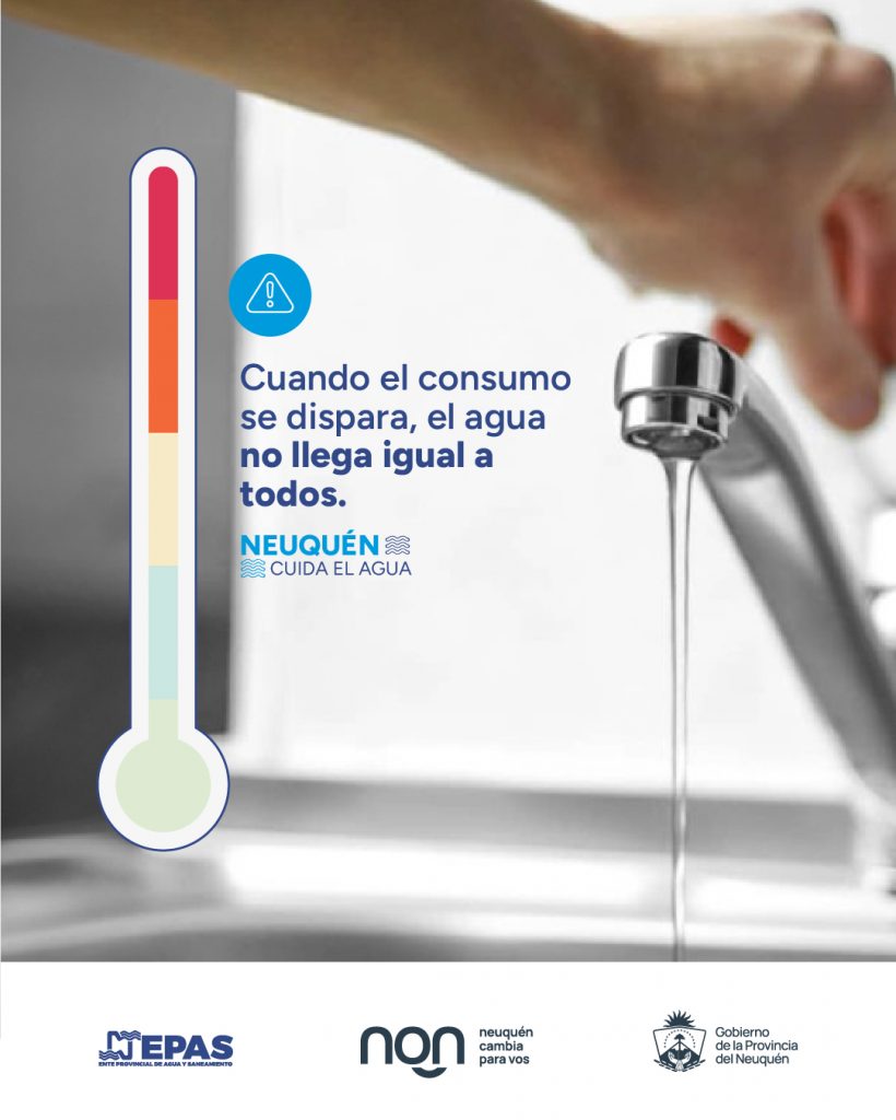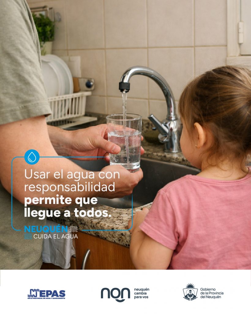 El agua alcanza si la usamos con responsabilidad. En un contexto de emergencia hídrica y altas temperaturas, el cuidado del agua es una responsabilidad compartida, y el compromiso individual resulta clave para garantizar un servicio equitativo y sostenible en toda la provincia de Neuquén.