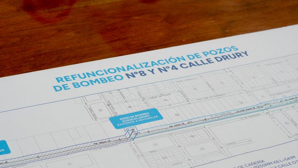 Esta refuncionalización se logrará mediante la colocación de 982 metros de cañería de 315 milímetros de diámetro, lo que incrementará de manera considerable la capacidad de transporte. A su vez, el pozo de bombeo de Drury modificará también el sentido de su impulsión para derivar los líquidos hacia la calle O’Connor, donde descargará sobre el Colector Cloacal del Oeste I, recientemente construido y con capacidad suficiente para transportar los caudales sin inconvenientes.