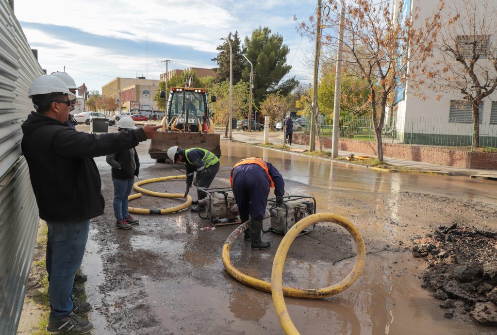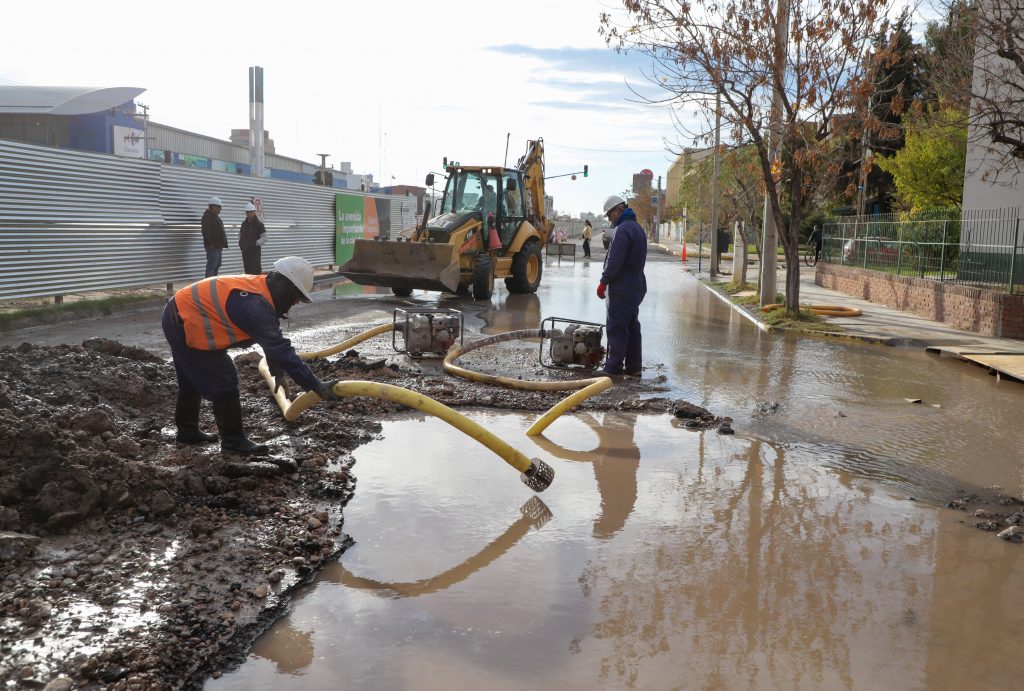 Las tareas se desarrollaron durante toda la jornada e incluyeron la regulación de válvulas y la detención del sistema de bombeo sobre el río Limay para poder intervenir la cañería. La reparación consistió en la sustitución del tramo dañado de asbesto cemento por uno de similares características, lo que permitió avanzar en la restitución del servicio.