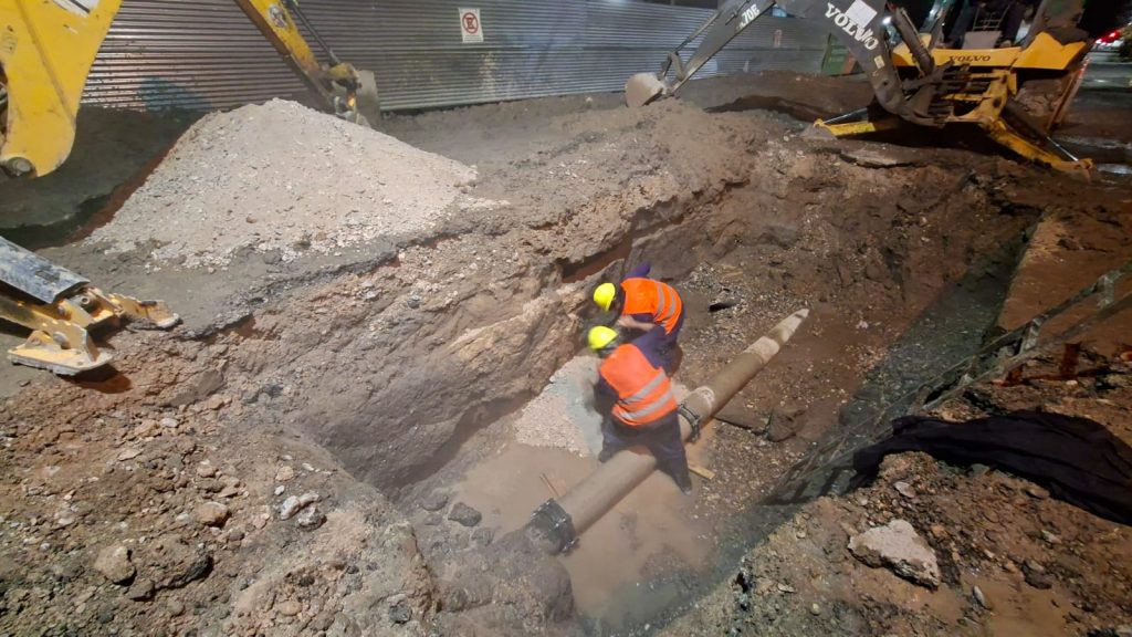 Al momento de poner nuevamente en funcionamiento el sistema de bombeo “Leguizamón” y comenzar a recuperar presión en la red, se detectó una nueva fisura de menor magnitud, que también debió ser reparada, extendiendo los trabajos hasta la madrugada.